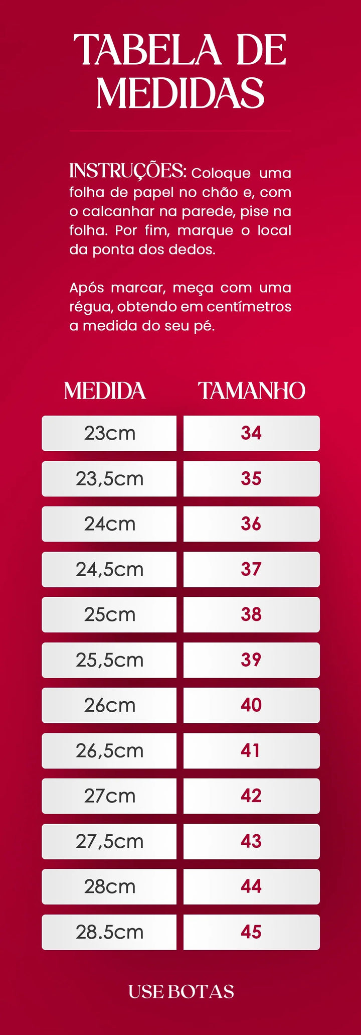 Durabilidade Superior Construída para durar, a bota resiste ao desgaste diário com elegância.