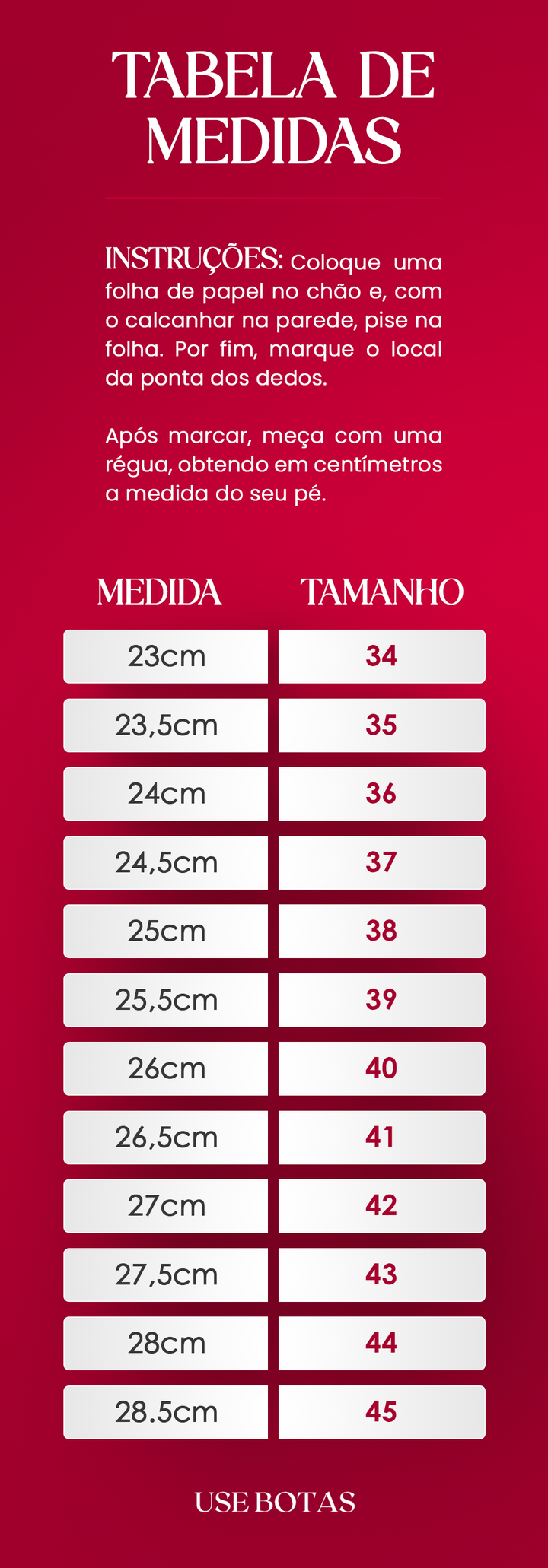 Facilidade de Combinação Sua versatilidade torna a bota uma peça fácil de combinar, garantindo que você esteja sempre na moda com o mínimo esforço.