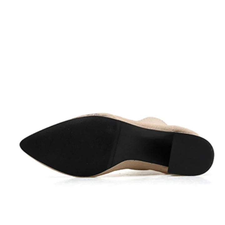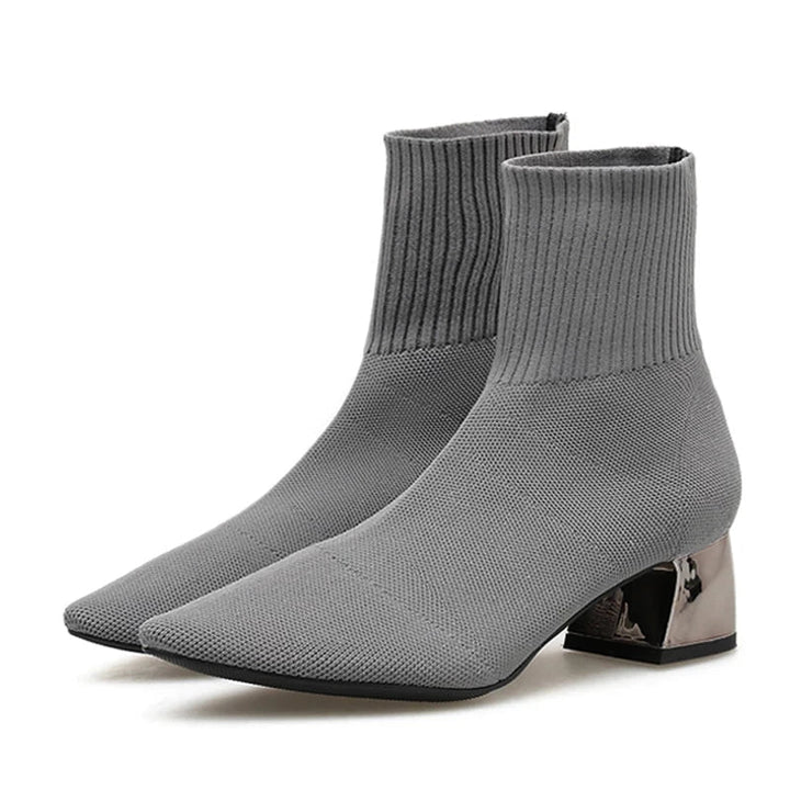 Bota Feminina de Cano Curto com Bico Fino Tecido Elástico Salto Baixo – (Promoção de Inverno 2025)