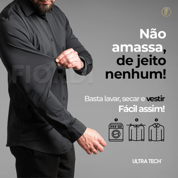 Conheça a Camisa Ultra Tech, a camisa social masculina que une elegância, conforto e tecnologia. Feita com um tecido inovador, ela não amassa, não precisa passar e oferece um caimento impecável.