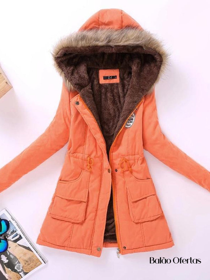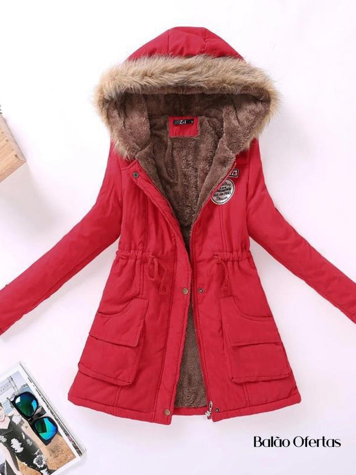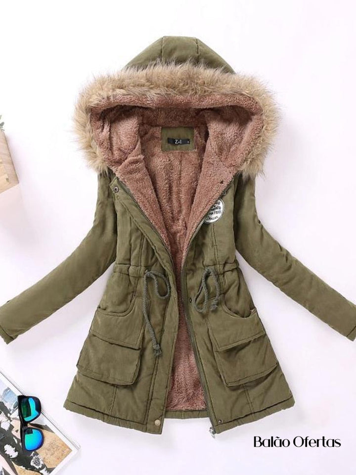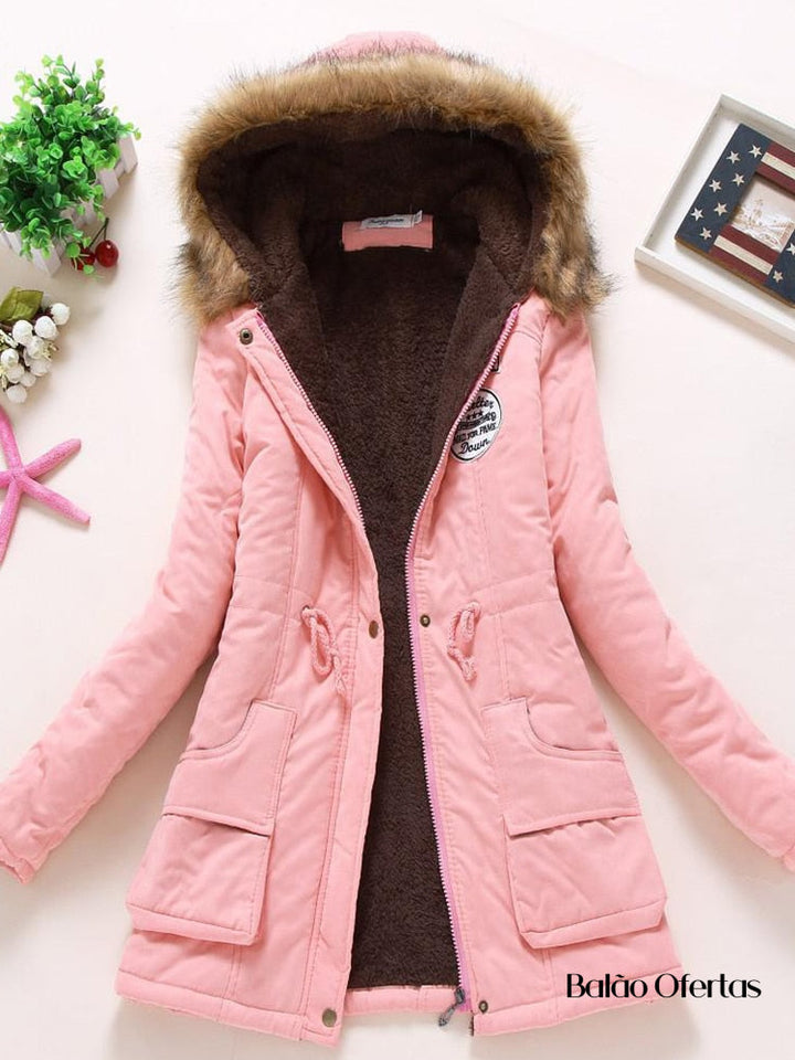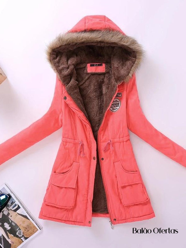 Casaco Feminino Grosso de Pelúcia com Capuz