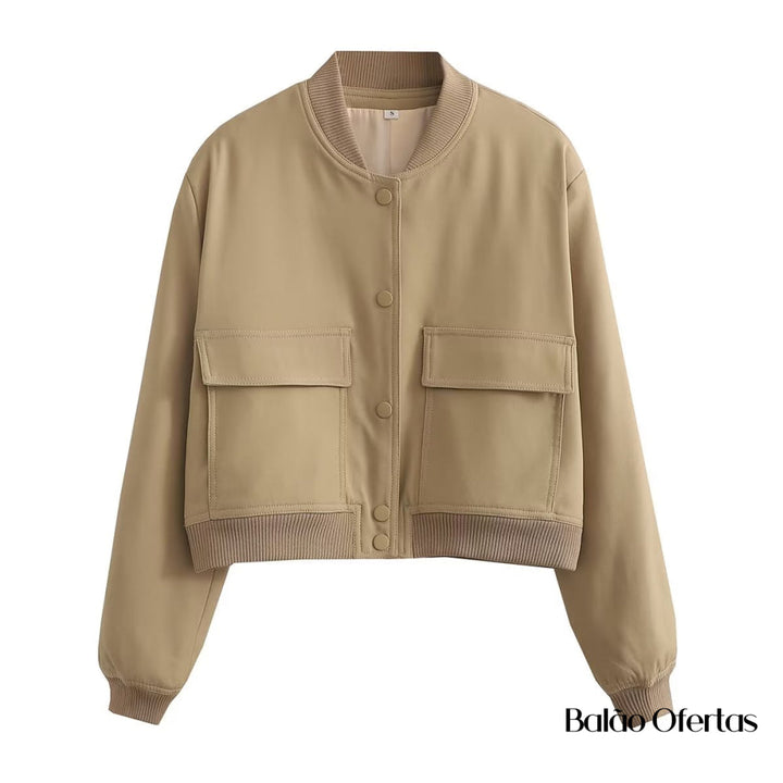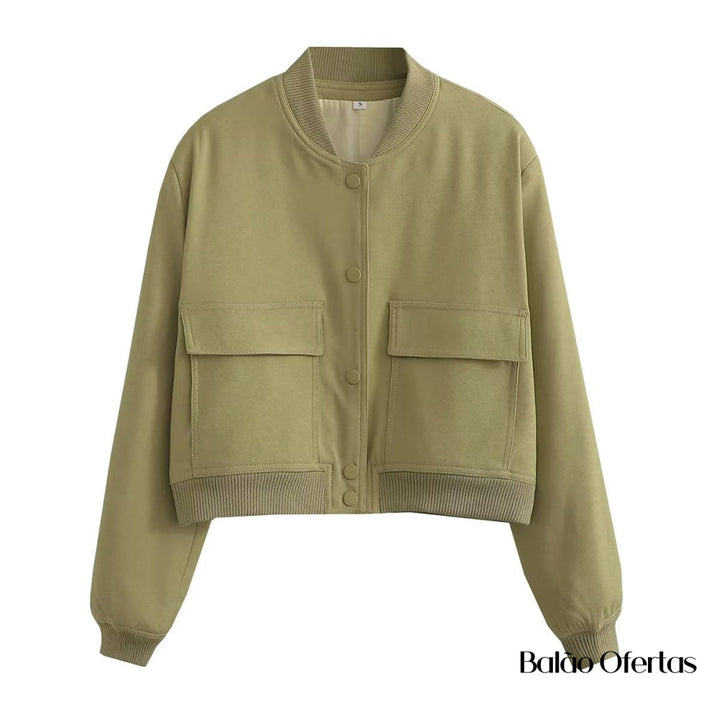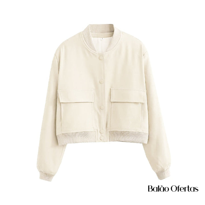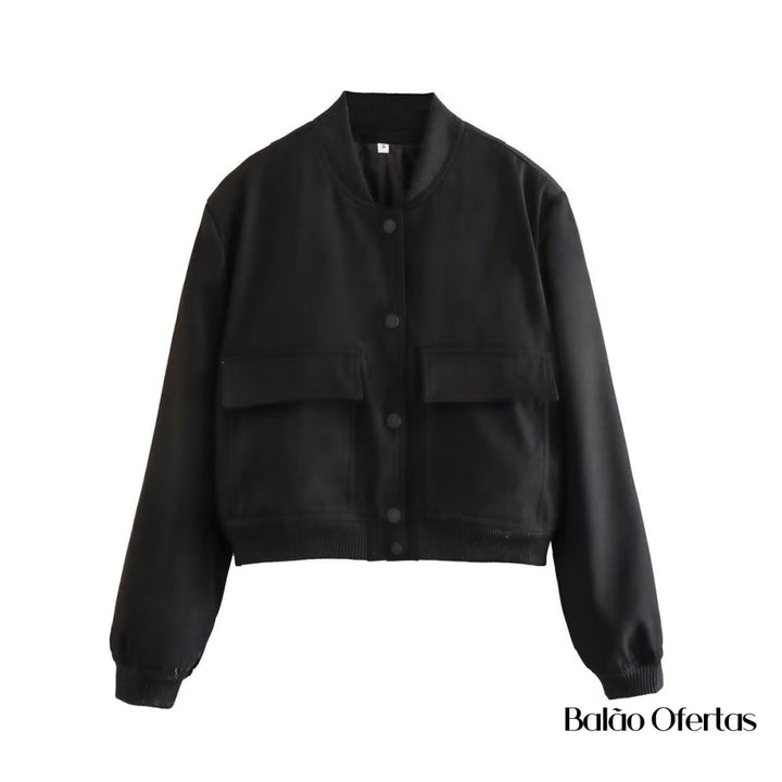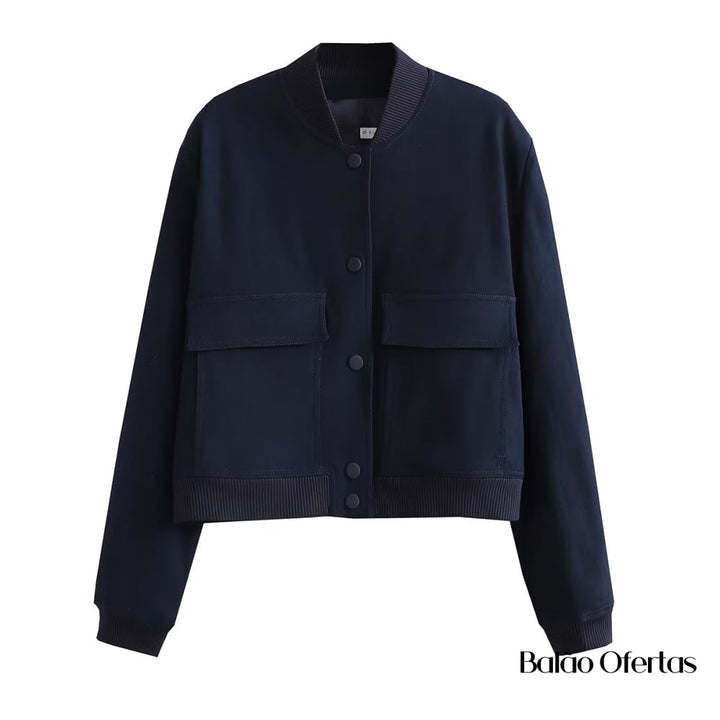 Blusa Feminina Bomber Zahra permite que você se destaque onde quer que vá. Seu caimento impecável valoriza a silhueta feminina, enquanto as mangas longas e o punho elástico proporcionam um ajuste perfeito.