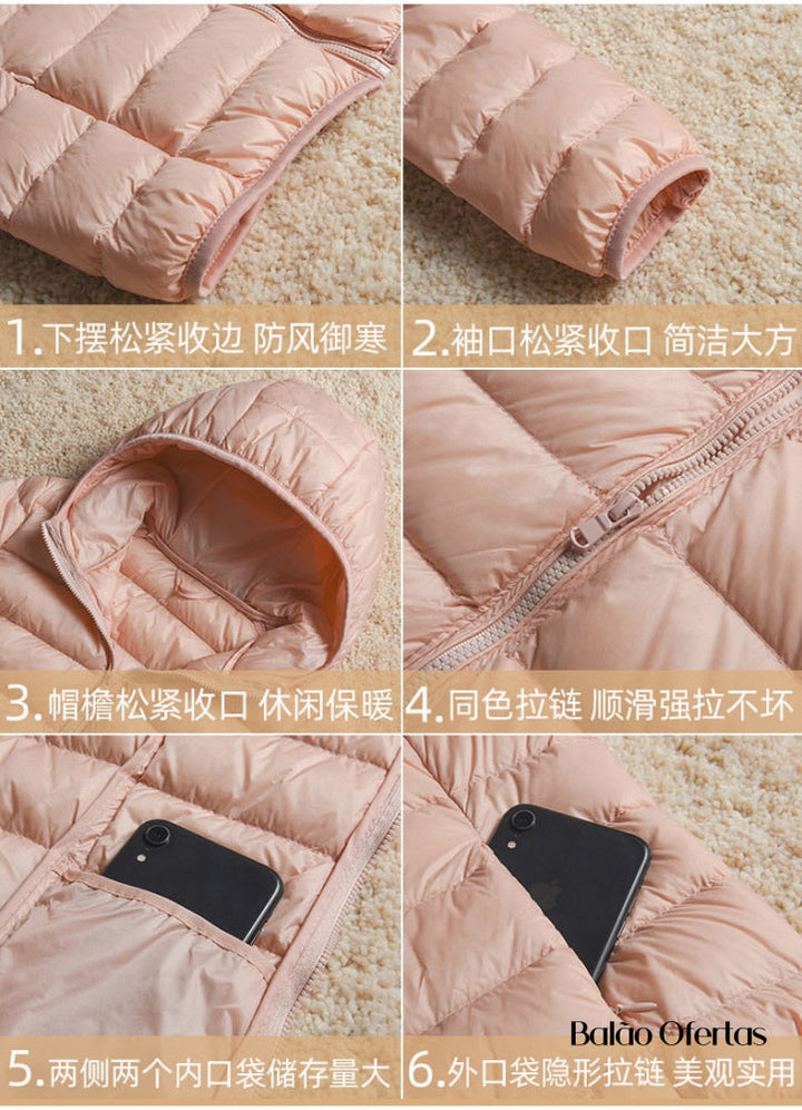- Leve e portátil: Esta jaqueta ultra-leve é perfeita para transportar em sua bolsa ou mala.- Design elegante: Com o seu design elegante linda e protegida durante toda temporada de frio.