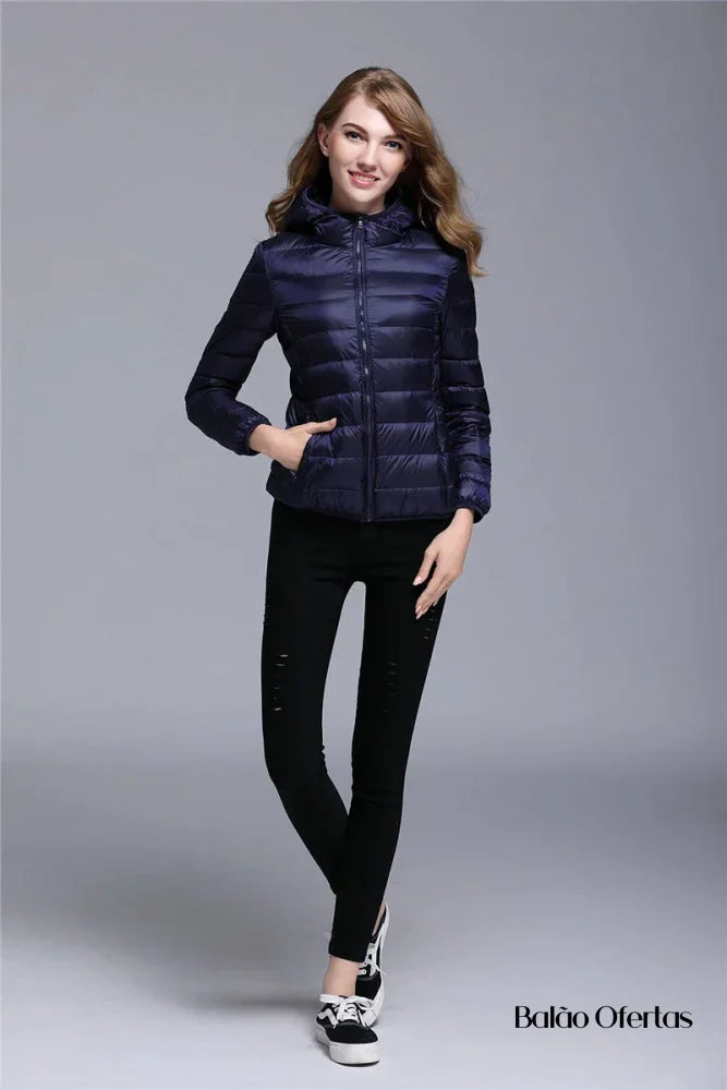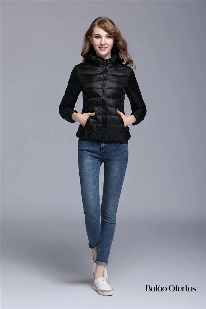 - 1x Jaqueta Puffer Feminina Básica com Capuz Annabele